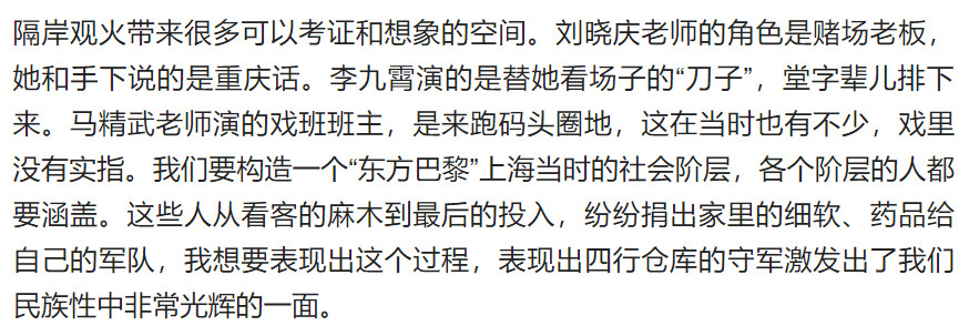 (來自《導演管虎:我想表現我們民族性中非常光輝的一面》——雖然我們都清楚“表現XX激發了光輝的一面”和“表現光輝的一面”之間的區別)