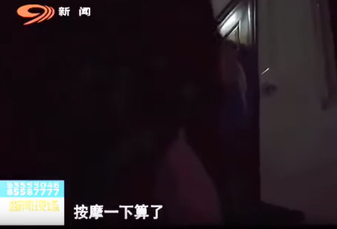 節目從5分08秒就是到按摩院二樓進行按摩,整整一分鐘時間裏都是按摩的內容,中間女技師多次和電視台的“線人”王先生談論價格,動作不停: