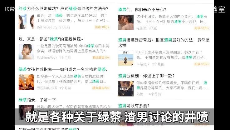 這些自媒體和電視劇,又反過來影響了讀者和觀眾的認知,給了他們一套更具體的貼標籤方式。於是你就可以看到,每當這種劇熱播之後,就是各種關於綠茶、渣男討論的井噴。