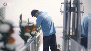 隨着船長陳琦按下三聲汽笛,裝着骨灰的降解罐被緩緩放入水中,罐子是雪白的蓮花形狀——含佛教“腳踏蓮花,駕鶴歸西”之意。
