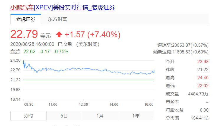 2020年8月28日,小鵬汽車上市後,股價不斷上漲,收盤於22.79美元。