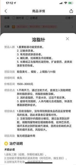 然而即便監管部門三令五申,美團平台上仍然存在“美白針”、“溶脂針”等非法項目。