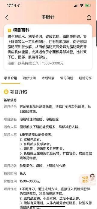 無獨有偶,今年7月,上海市衞健委監督所公開了多個醫療美容警示案例,強調了“溶脂針”不是合法的醫美項目。上海市衞健委監督所衞生技術人員監督科科長劉洪表示,“美白針”、“溶脂針”等在中國沒有正式批准,並不是合法的醫美項目,正規守法的醫美機構和醫生不會給就醫者注射這類產品。劉洪表示,不少愛美人士不瞭解醫美機構是否具備相關資質,很多人甚至不知道“美容院是不允許開展注射手術的”。