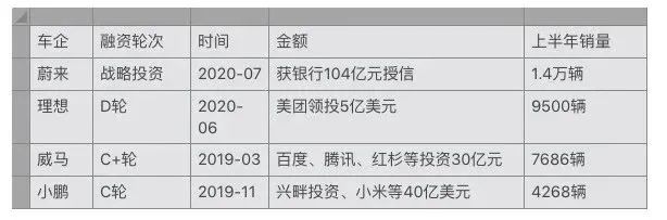 ▲2020年上半年4家中國造車新勢力品牌銷量,投中網製圖