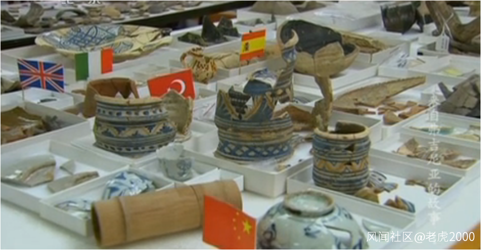 英國人在美洲的第一殖民地Jamestown在歐洲人沒來以前的文化層(最下層)出土中國明初洪武-永樂時代的民窯青花碗