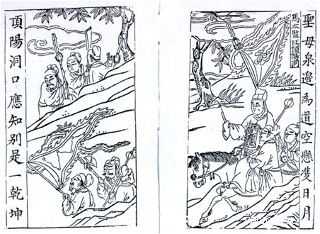 明代繡像小説《三寶太監下西洋記》,明代使節鄭和的先行士兵扛着北斗旗。