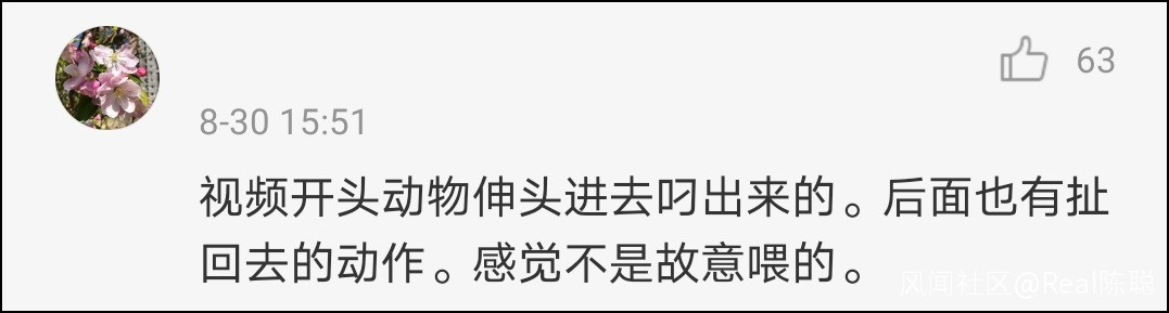 另外還有網友留言表示:“我去過北京野生動物園,這個區域是可以投餵的,工作人員還會提醒遊客儘量勻速慢速開車投餵,因為動物會把頭伸進去搶,不明白博主為啥説不能投餵?”