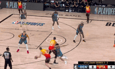 第三節上來之後,掘金握有5分左右的領先優勢,但是穆雷又隱身了,這段時間他幾乎都沒有接球。而爵士憑藉不斷的防守反擊,一度將分差追到過1分。直到這節最後1分鐘,穆雷才連得4分,幫球隊穩住局勢。