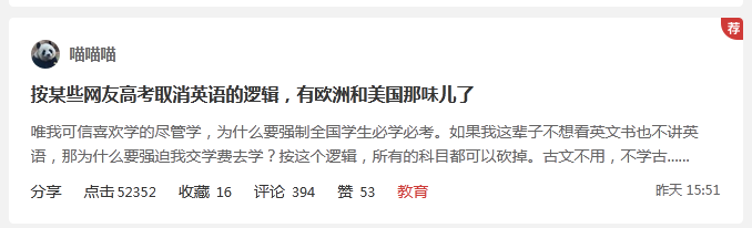 傳送門: 按某些網友高考取消英語的邏輯,有歐洲和美國那味兒了 評論 637 用户精選