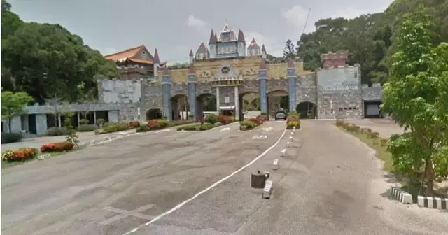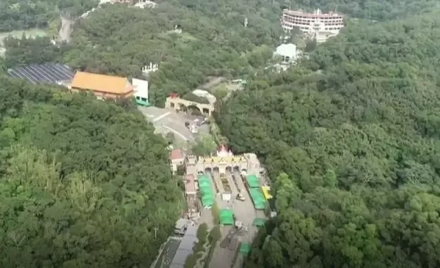 道場佔地155公頃,裏面有許多綠色帳篷,Y字型道路一分為二,右邊有觀音神像大水池,好幾層樓的建物,左邊類似廟宇牌樓,看起來就像是佛教聖地。