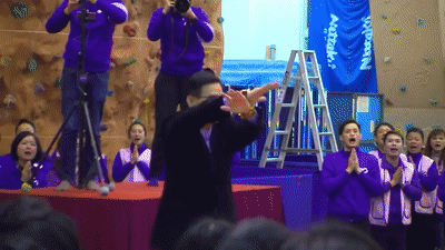 但後來似乎見到聲勢不妙,改而支持“小英”,“聖皇新天公”説“請小英總統的靈來與各位結緣!“一旁的女子便起身,並説現在是"小英”來覲見;與"聖皇新天公”聊起天。