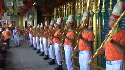 “聖皇新天公”最朋克的地方在於,教主身着俗氣的軍隊元帥禮服,並配置由中年信徒組成的儀杖隊,接受教主檢閲