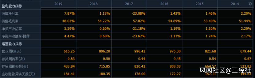 同時,公司存貨週轉和應收賬款能力也明顯偏弱。其中,存貨週轉天數分別為820天、715天、433天、320天,應收賬款週轉天數分別為176天、180天、181天及257天。