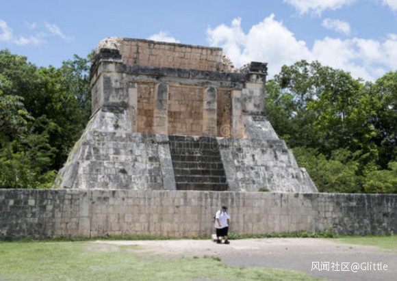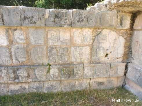 看出來了嗎,它確實不是巨石塊碼的,它的內部有大量的磚頭大小的碎石,外面貼上石板,乍一看上去還挺唬人的。至於奇琴伊察其他的石造建築,也有圖片