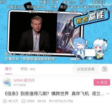 整個9月,B站、抖音、西瓜視頻等短視頻平台的電影UP主針對《信條》產出觀影指南便成為必修課。粗略統計,B站在《信條》映前就有超過1000條以上UP主原創視頻,其中80%以上都是針對劇情結構預測分析,還包括物理、熱力等知識普及內容。