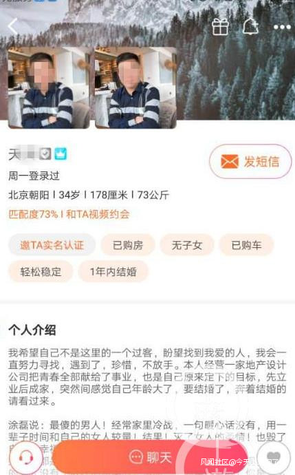 報料人陳梅(化名)女士告訴記者,今年1月4日,百合婚戀網上有位叫張永的男子加了她微信,並主動發來身份證、工作地址、家庭地址、手機號碼等個人信息。該男子稱,其至今未婚原因是因前女友在美國讀研究生,他等了前女友8年,結果前女友在美國懷了別人的孩子。兩人分手後,他一直走不出來,甚至記得跟前女友分手具體多少天,表現得非常痴情。