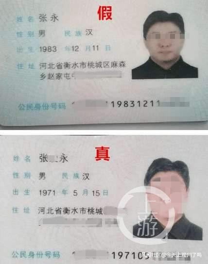 “我開始懷疑他在騙我,後調查又發現他給我的身份證信息是假的,真實姓名並不是張永,而是張某永。我質問他為什麼騙我,他沒有任何解釋就把我拉黑了。”陳梅稱,她還查出,張某永是衡水一家公司董事長。為進一步證實相關情況,她和家人在今年8月初前往該公司找張某永,“他承認偽造身份證,他的真實名字是張某永,並提出給我兩萬塊錢,讓我不要報警。”