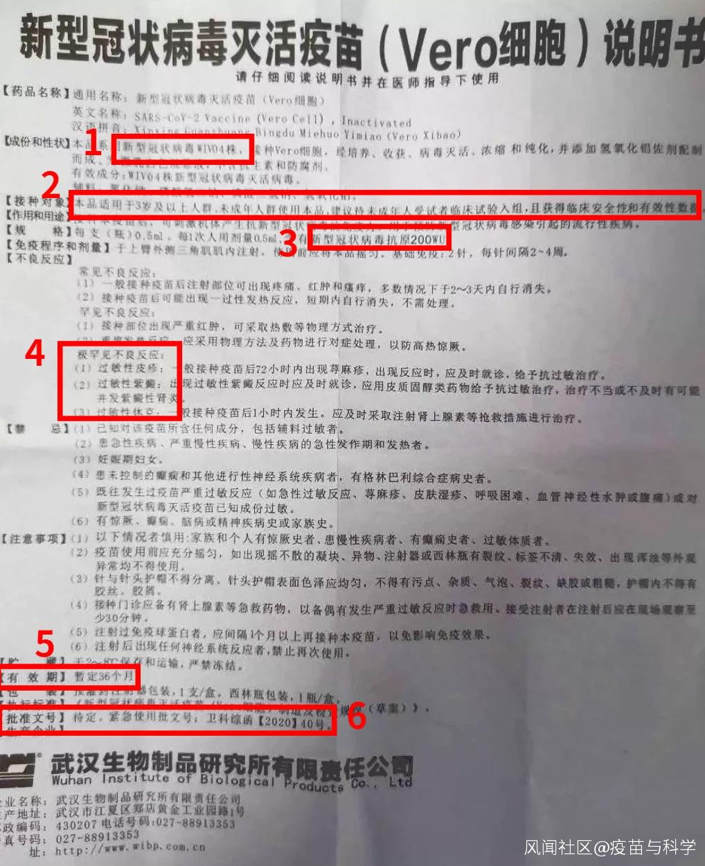 昨晚,有同行給我一份武漢生物的滅活COVID-19疫苗説明書諜照。陶醫生梳理出其中的六個看點,供大家參考。諜照質量不太高,但完全可以看清楚字體。