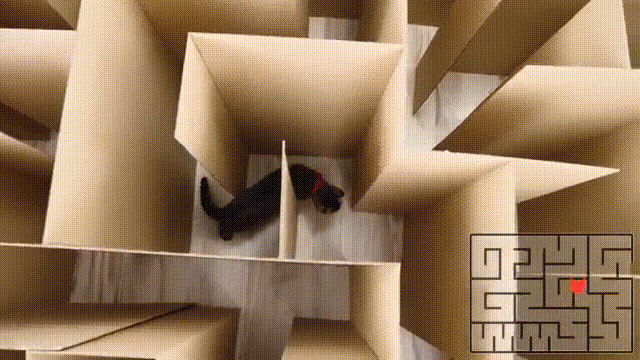 人們熟悉的貓貓狗狗自然是可以走迷宮。只是因為體積的原因,狗迷宮看看起來很費紙板,而貓主子願不願意配合走迷宮則是一個更為現實的問題。