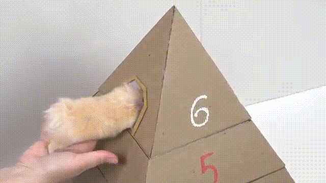上文提到的那個播放量1.8億的“6層金字塔迷宮“,就是一個很好的例子。視頻的開頭,倉鼠在擁擠的塔頂上扭動身體鑽進迷宮,迷宮的外觀普普通通看不出什麼玄機。