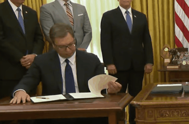 9月4日,塞爾維亞總統武契奇與科索沃領導人薩奇都在白宮,雙方簽署了經濟正常化協議,科索沃取消了2018年強加100%關税,而美國則準備撤出一部分軍隊並提供數億美元的援助作為補償。
