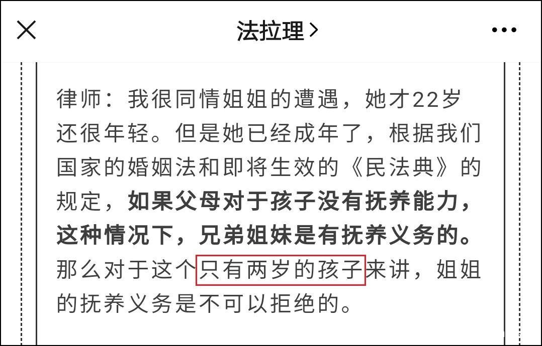 普法工作可以再嚴謹一點:22歲姐姐拒養的是弟弟還是妹妹?_風聞
