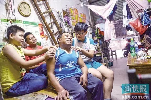 2017年,閲陽中考結束那天,剛好也是父親節。兩個孩子想給父親送節日禮物,但老朱怎麼會要呢。最後,一個孩子下餛燉,一個給爸爸揉肩膀,一家人在小屋裏開懷大笑。