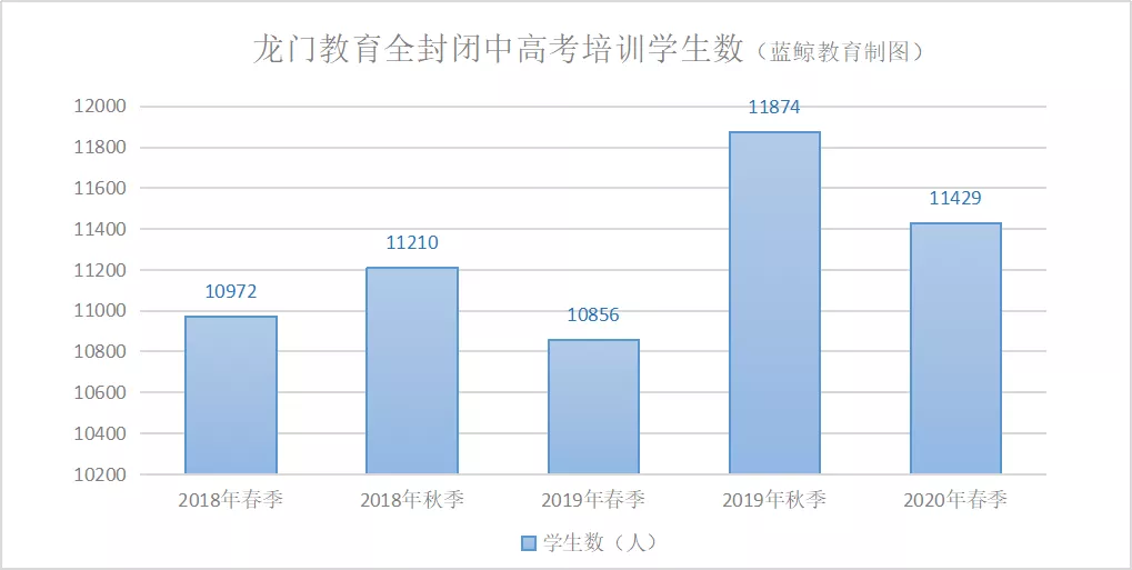 受中高考固定考試時間影響,龍門教育全封閉中高考培訓學校的學生數呈現一定季節性,秋季學生數量普遍高於當年春季學生數量。2020年春季,龍門教育全封閉中高考補習招生規模繼續擴大,截止目前全封閉校區共6個,春季在校人數為11429人,同比增加5.28%。