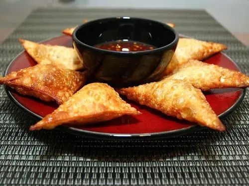 類似的還有仰光蟹餃(crab Rangoon),這其實是一種油炸餃子,裏面塞滿了蟹肉、奶油芝士、辣椒碎和HP醬汁。