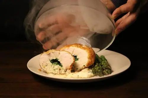 這道菜的基本做法是:雞胸肉裹上麪包屑,裏面填滿調味黃油,之後放到油鍋裏煎炸。