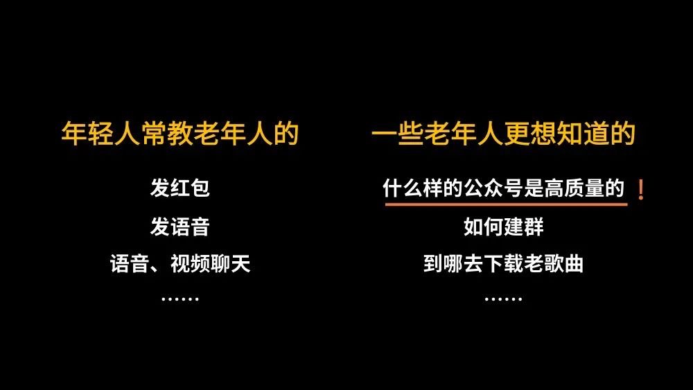 騰訊研究院曾經以微信為代表,調查過老年人的數字生活狀況,就發現小輩們雖然會教老年人使用微信,但教的是發紅包、發語音、視頻聊天這樣的工具性的功能,但一些老年人更關注的東西反而很少有人關照到。