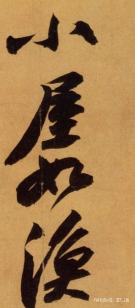 在已經知道是黃庭堅、蘇軾作品的情況下我估計一些人會腦補這些作品的好,這很正常,事實是在書家眼裏這些作品的確很好,但他們相對於前代的作品都是有一些離經叛道的。我身邊就曾有人指着這些作品説是醜書,批判書法界世風日下人心不古。展示這些並不是為了説明“曾翔是美的”,而是為了説明審美的多樣性。曾翔“吼書”背後有他的邏輯,這個邏輯是否正確需要大量的書法專業知識來判斷,不能僅僅出於自己直觀感受的“美醜”。已經有評論指出其所書電腦字體確有童趣,也有人指出其“吼書”適合作為現代空間的裝飾。事實上“吼書”這一套大字確實是考慮了現代空間裝飾的目的,將漢字融入在潑墨裝飾畫的邏輯中。從某種意義上説這種創造類似明代開始將書法懸於壁上因而產生的裝飾性大字書法,比如楊維禎下面這個:
