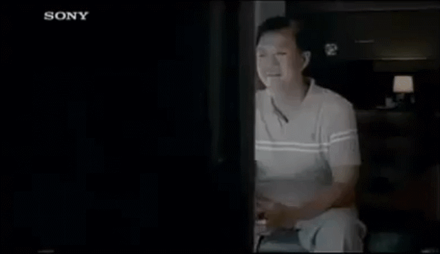 其實這裏反轉才開始。父親準備哭、還沒哭出聲的時候,畫面裏突然伸出了一隻手,遞給了他一張紙巾。