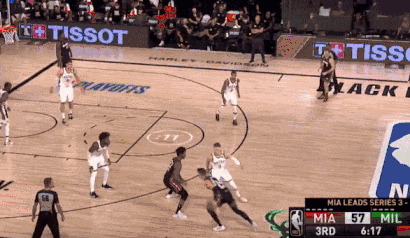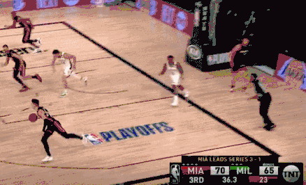 熱火由於字母不在,防守端也一度有些不適應,同時因為雄鹿五個人都站在外線,所以熱火的防守擴的很大,導致內線空虛,屢屢被雄鹿的突破吸引或者無球空切打成。