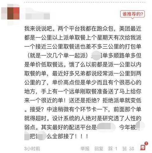 也有人從個人選擇方面來講:你覺得當外賣員辛苦,完全可以不做,既然留下,無非是因為有所圖,比如送外賣至少比工廠賺錢多;