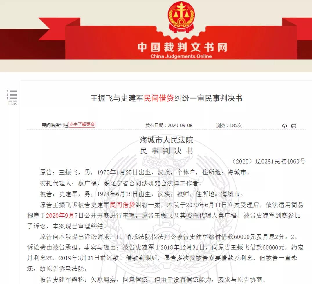 不過,海城市人民法院並未按照新規予以調整,而是“雙方約定月利率為2%(年化24%),不違反法律規定,應予以准許”。