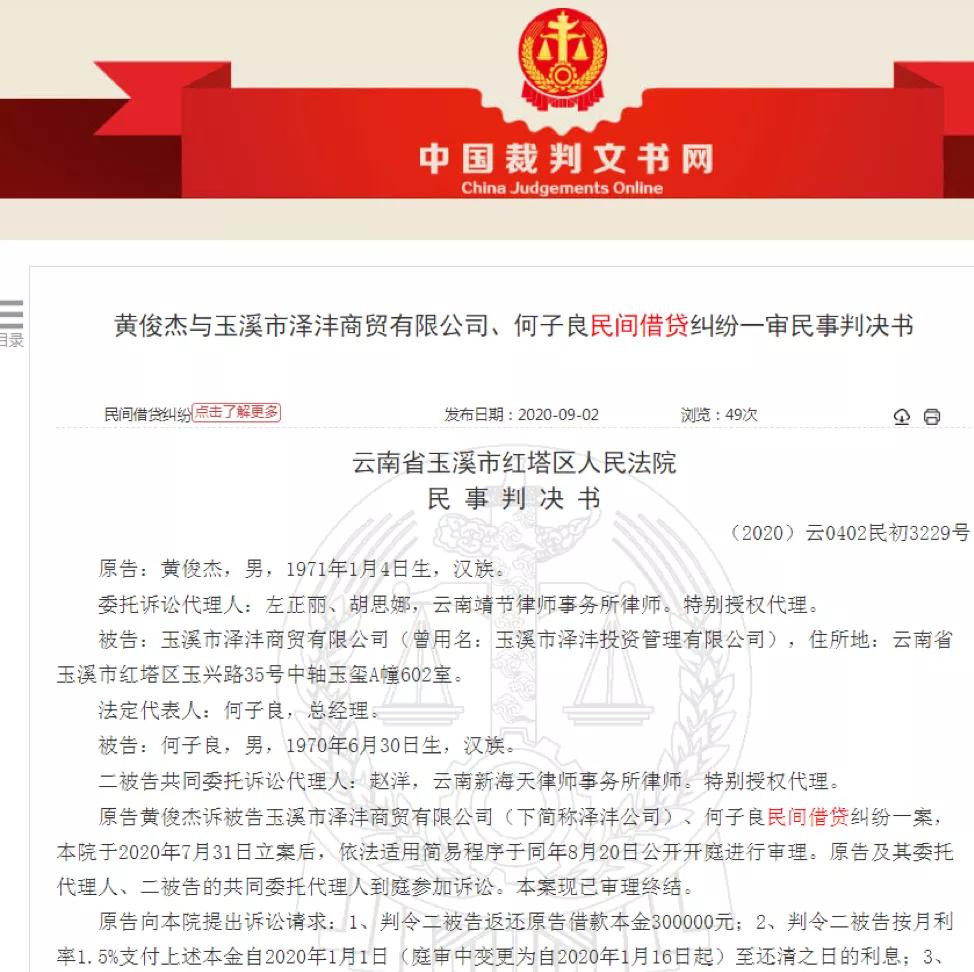 無獨有偶,《黃某與玉溪市澤灃商貿有限公司、何某民間借貸糾紛一審民事判決書》中,法院同樣落實LPR4倍標準。