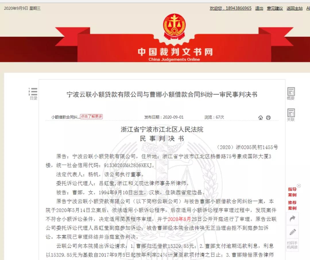 可據《寧波雲聯小額貸款有限公司與曹某小額借款合同糾紛一審民事判決書》顯示,浙江省寧波市江北區人民法院引用的法律條文中,包括《最高人民法院關於審理民間借貸案件適用法律若干問題的規定》的相關規定。