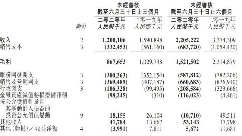 2020年第二季度,雖然成本費用有所增加,但是仍然不及2019年同期。例如,二季度銷售及營銷費用環比增長26.8%,但是同比減少9.34%。而銷售成本更是環比下降5.41%。