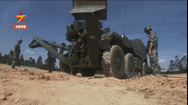 ▲181車載榴進入射擊姿勢