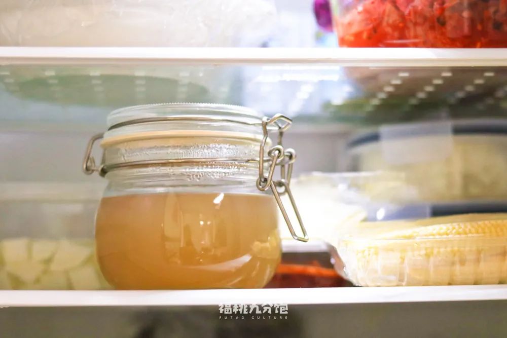 做好的高湯,也需要用濾網和紗布濾乾淨雜質,分裝在玻璃罐或密封袋,放在冰箱冷凍層,可以存1個月之久。