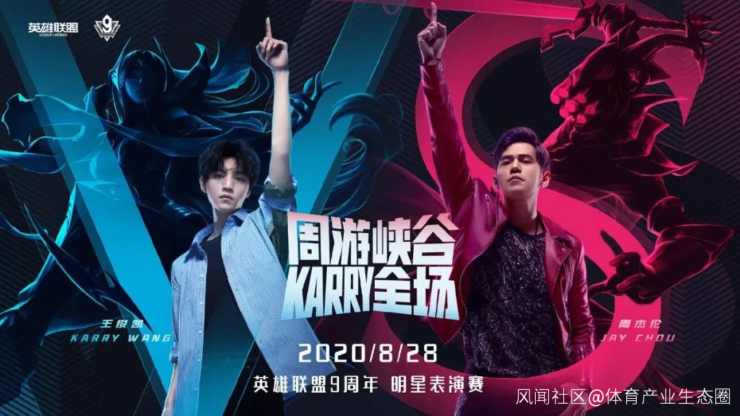 2020年8月28日英雄聯盟9週年盛典現場,以「周遊峽谷,Karry全場」為主題的明星表演賽正式打響,周杰倫率領的超越戰隊對陣王俊凱率領的無畏戰隊,展開了一場激烈而又精彩的對決。