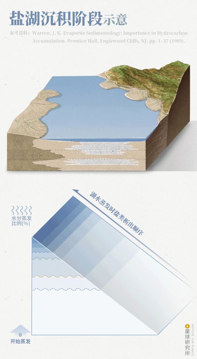(鹽湖沉積階段示意,製圖@鄭伯容&雲舞空城/星球研究所)