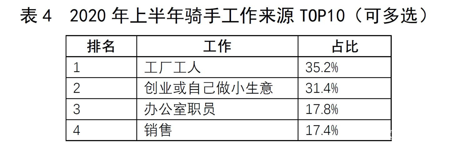 2020年上半年,以美團為例,新增有單騎手達到138.6萬人,其來源前4名如下圖所示(完整榜單可參考美團的《2020上半年騎手就業報告》):