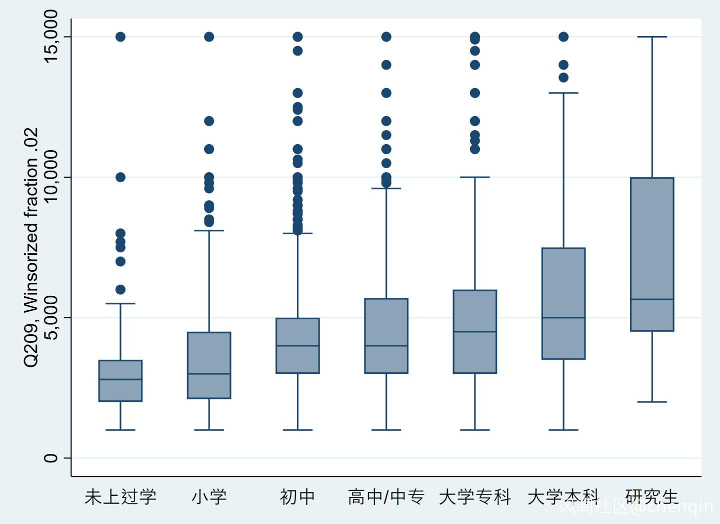 根據2019年流動人口動態監測數據,我們可以算出不同教育程度的人在每日工作8小時情況下的平均收入(收入經過前後2%截尾):