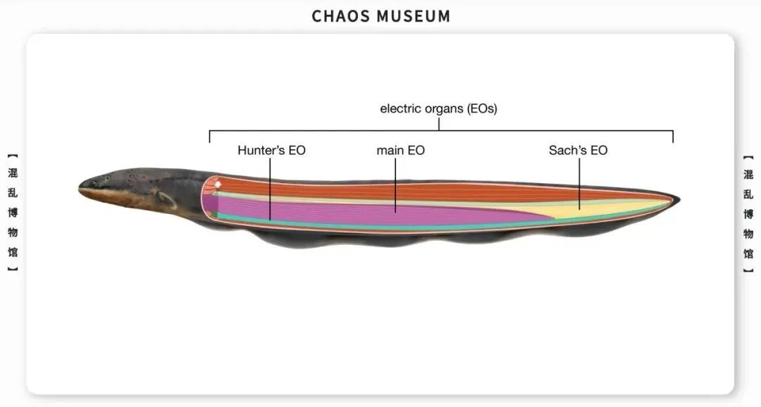 要回答這個問題並不容易。不過,我們可以先看看它們為這種演化所付出的代價:電鰻所有的內臟都只能在「頭部」擠成一堆,相當於腦袋後面緊挨着屁股,看似是「軀幹」的絕大部分其實都是尾巴,裏面裝滿了電器官。