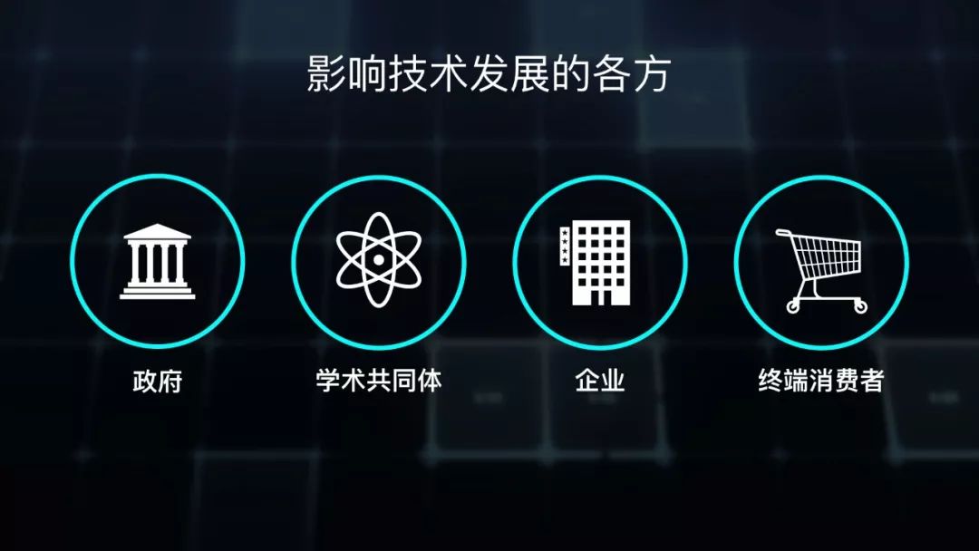 我也做了一下歸納跟總結,基本上可以歸結為以下的四方:政府、學術共同體、企業和終端消費者。