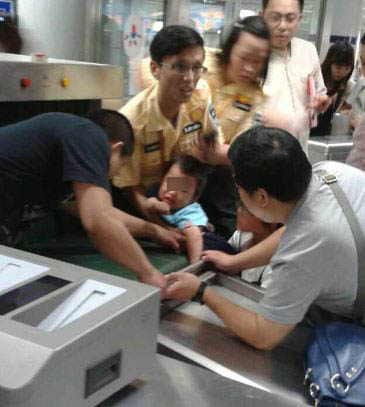 小到量角器,大到遊樂設施,很難預判小孩子會被什麼奇奇怪怪的東西給卡住: