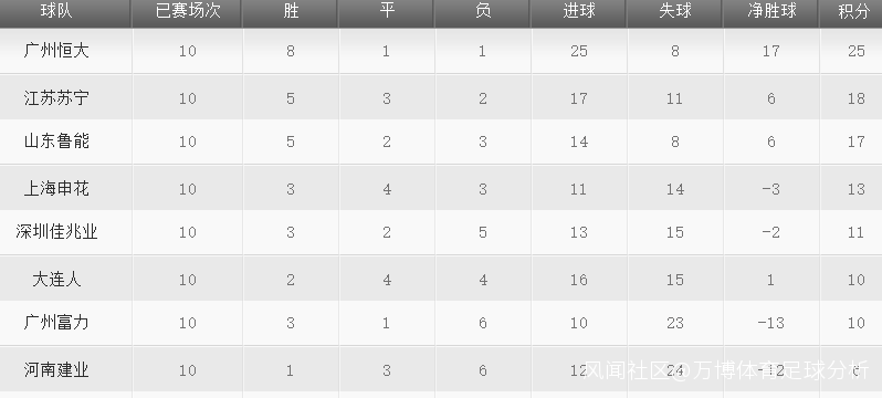 昨晚,中超聯賽大連賽區第十輪的比賽已經全部結束,積分榜的排名變化不大,廣州恒大積25分依舊排在榜首的位置,已經提前鎖定了一個晉級爭冠附加賽的名額,甚至大概率地鎖定榜首的位置。在第2到第7的球隊排名中,6支球隊的積分都達到了兩位數,爭四也將會在除了建業之外的球隊中展開。