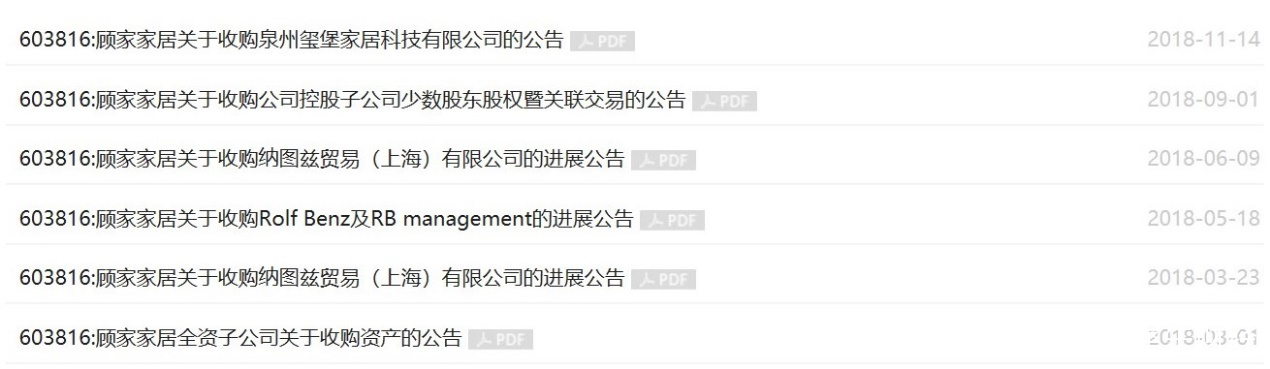 據顧家家居公告顯示,顧家家居併購納圖茲等6個項目共計投資了15.3億元,據悉,這六個項目分別為:主營國內業務的納圖茲上海;主營牀墊和乳膠枕頭泉州璽堡;主營定製沙發的優先家居;業務以歐洲市場為主Rolf Benz與RBM為歐洲公司;經營國內市場的卡文家居和班爾奇。